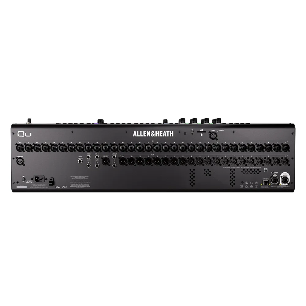 Conoce la Allen & Heath Qu-7D, la mesa de mezcla digital definitiva que eleva el estándar del audio profesional para producciones complejas. Con un núcleo XCVI a 96 kHz y conectividad Dante, esta consola de mezcla ofrece una impresionante capacidad de 38 entradas y 24 salidas totales, incluyendo 32 canales de entrada de micrófono/línea. Es la elección premium para ingenieros de sonido, productoras de eventos en vivoa gran escala y estudios de grabación que demandan la máxima flexibilidad y una calidad de sonidoimpecable.