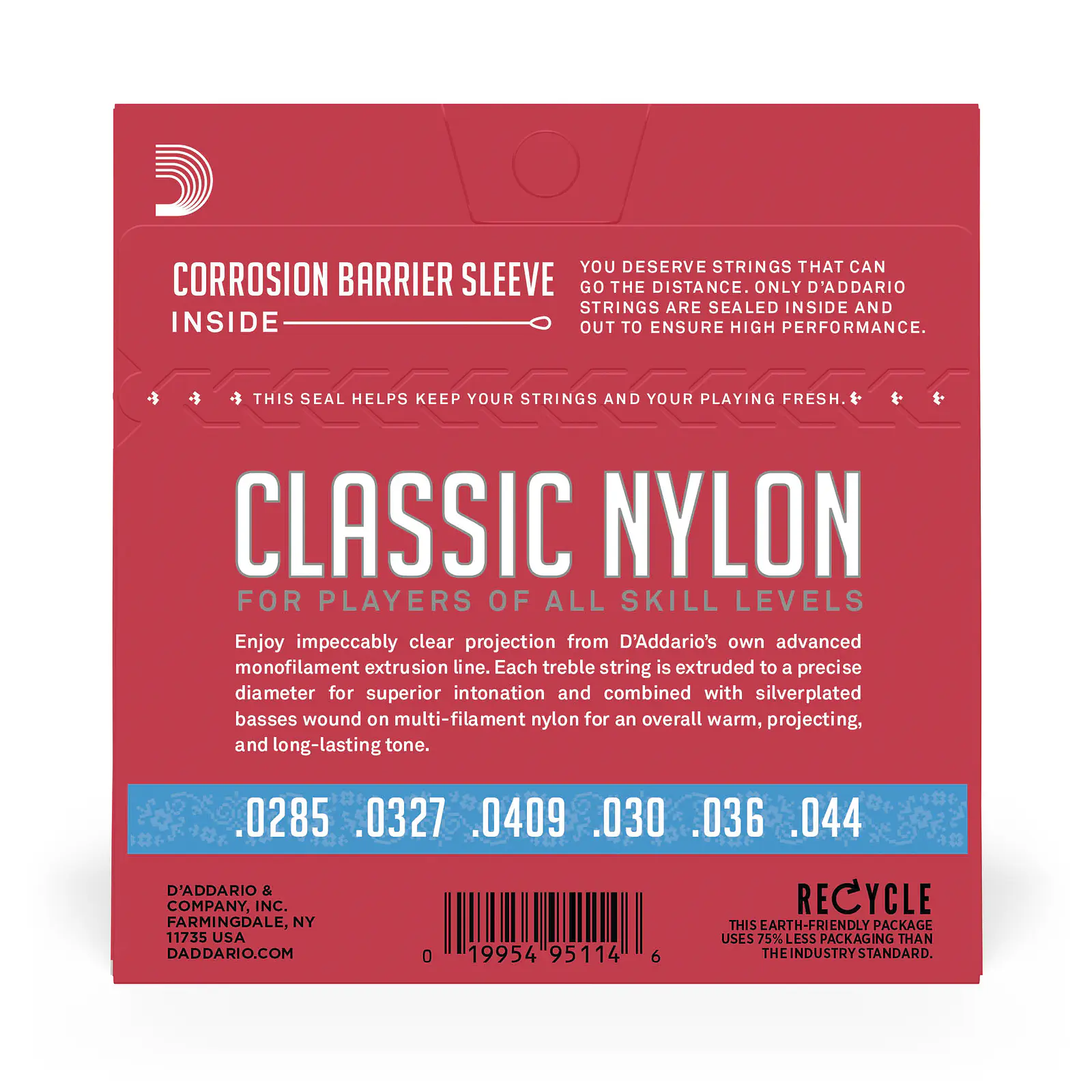 Las cuerdas para guitarra clásica de nailon D’Addario EJ27H son fantásticas para principiantes, estudiantes y profesionales. Este juego de tensión alta contiene 3 agudas de nailon transparente y 3 graves entorchadas con cobre plateado para un equilibrio óptimo de tono cálido, proyectado y duradero.