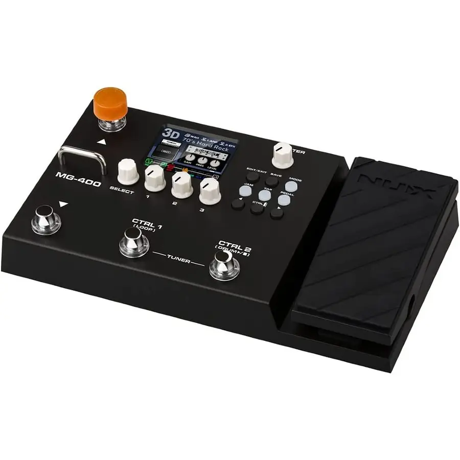 El NUX MG-400 es una pedalera asombrosa al igual que su modelo anterior, el MG-300. El MG-400 tiene 2 potentes chips DSP para el algoritmo de modelado de amplificador de white-box de alta definición (TS/AC-HD) y efectos posteriores Core-Image. Desde el lanzamiento del MG-300, nuestros clientes han quedado impresionados con su sonido y versatilidad, sin mencionar su fácil ajuste de tono e intuitiva interfaz. Ahora, nuestro MG-400 partiendo del set de características del MG-300 de signal blocks móviles, 12 slots de colección DE IR, bloques P.L flexibles con configuración de parámetros mínimos y máximos, extenso menú de sistema, y perilla de volumen MASTER físico, el MG-400 es ahora el mejor modelador en relación calidad precio del mercado.